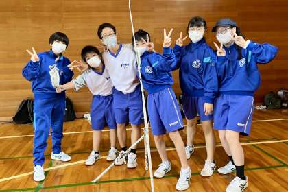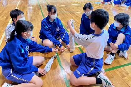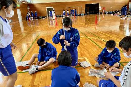 1年・宿泊学習・2日目・その31 公開日 2022/05/19 更新日 2022/05/19 1学年 5月19日(木) 10:00 イニシアティブゲーム「新聞紙タワー」 施設の最高記録は176cmですが、この班は171cmでした。 素晴らしい記録です!
