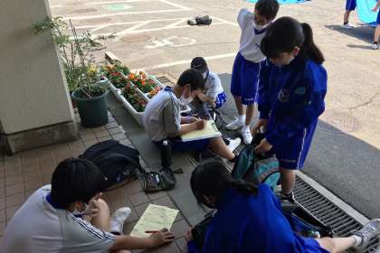 振り返りシートで、班で協力できた点や改善点を話し合いました。