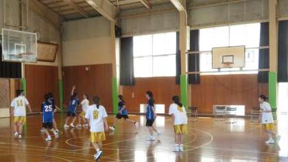 女子バスケットボール部は、第1体育館で、東部中との練習試合です。