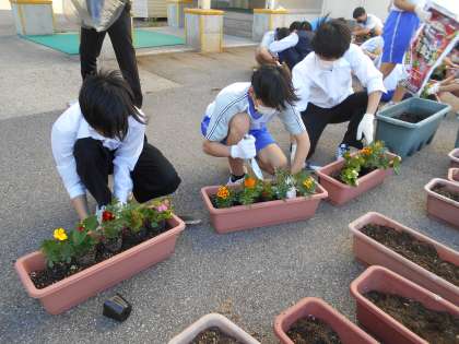 「お花をみんなで育てて、全校の心をひとつにしたい。」という委員長の思いからスタートしました。