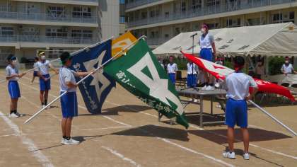 最後に、江上体育大会実行委員長の話(写真)で、結団式を終えました。