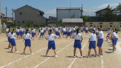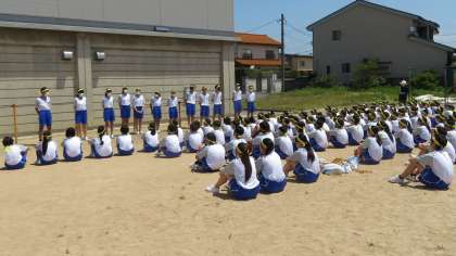 団活動・白虎団 公開日 2022/05/25 更新日 2022/05/25 山室中学校のページ 5月25日(水) 4限 結団式の後、団ごとに集合し、団リーダーや団顧問の紹介(写真:上)をし、団演技の練習(写真:下)に入りました。