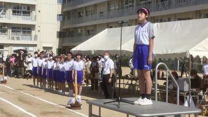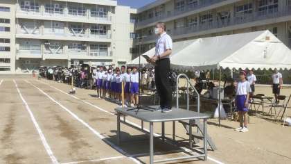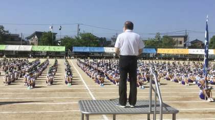 第76回 体育大会・その5 公開日 2022/06/02 更新日 2022/06/02 山室中学校のページ 6月2日(木) 8:30 開会式での 校長先生の言葉(写真;上、中)、実行委員長の言葉(写真:下)です。