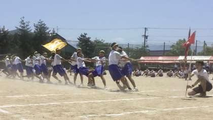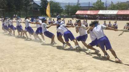 第76回 体育大会・その15 公開日 2022/06/02 更新日 2022/06/02 山室中学校のページ 6月2日(木) 10:50 プログラム7は、学年ごとによる「綱引き」です。 予行での予選を受けて、3位決定戦、優勝決定戦を行いました。 「腕力と団結力」で、勝利に導きます!