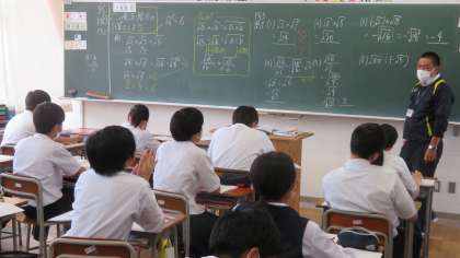 (写真 下:3年4組 数学の授業)