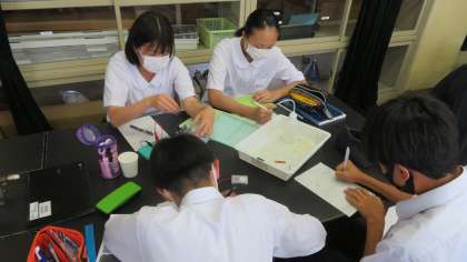 3年1組の理科は、第1理科室で、電池の実験を行いました。