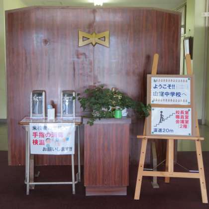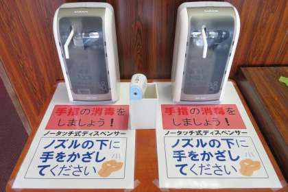 消毒液を「ノータッチ式ディスペンサー」に替えました。(写真:下)