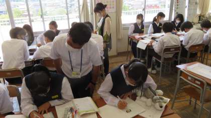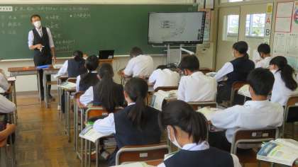 2年・授業風景 公開日 2022/06/10 更新日 2022/06/10 2学年 6月10日(金) 3限 気温は23度、天気は晴れ。 昨日よりは少し気温が高いので、蒸し暑く感じます。 少し疲れがたまってきていますが、授業に集中しています。 (写真 上:2年2組 社会の授業) (写真 中:2年4組 英語の授業) (写真 下:2年5組 数学の授業)