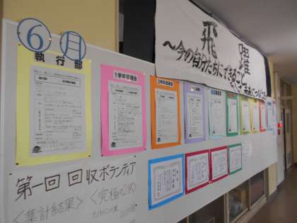 生徒会・掲示板リニューアル! 公開日 2022/06/10 更新日 2022/06/10 山室中学校のページ 6月10日(金) 生徒会掲示板が6月用にリニューアルしました! 6月の各委員会の動きや、アルミ缶回収の結果報告等がありますので、ぜひ見てください!