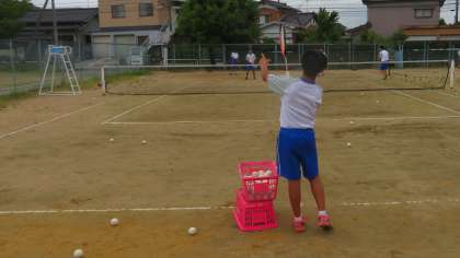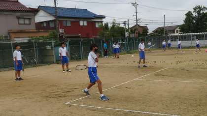 テニスコートでは、男女ソフトテニス部が練習しています。