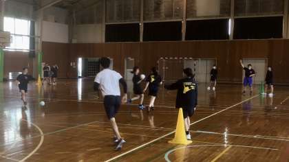男子バスケットボール部のあとは、女子ハンドボール部が練習を始めました。