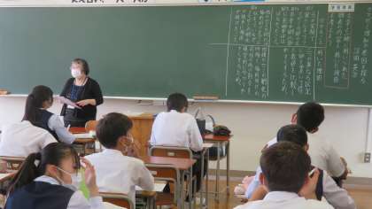 (写真 上:2年1組 国語の授業)