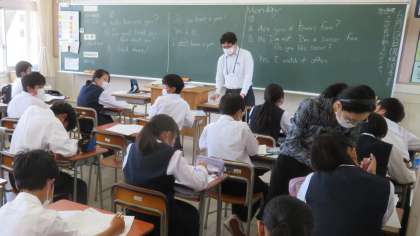 1年・授業風景 公開日 2022/06/13 更新日 2022/06/13 1学年 6月13日(月) 4限 6月第3週、メリハリをつけて、授業に集中しています。 (写真 上:1年2組 英語の授業) (写真 下:1年4組 社会の授業)