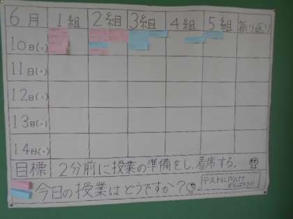 今週は、2分前着席に加え、次の授業の準備を整えるになっています。