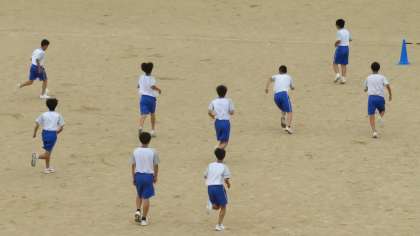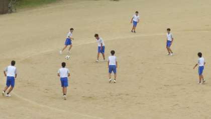 3年5,6組男子の体育は、グラウンドでサッカーです。