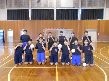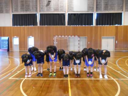 女子ハンドボール部は、大会が明日からなので、体育館で最後の調整練習です。