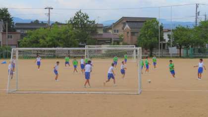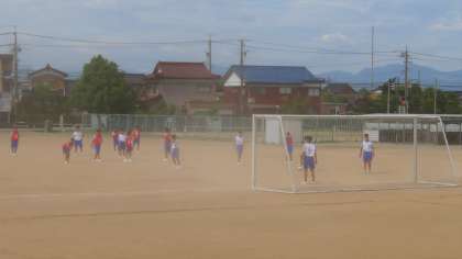 2年4,5組男子の体育は、グラウンドでサッカーです。