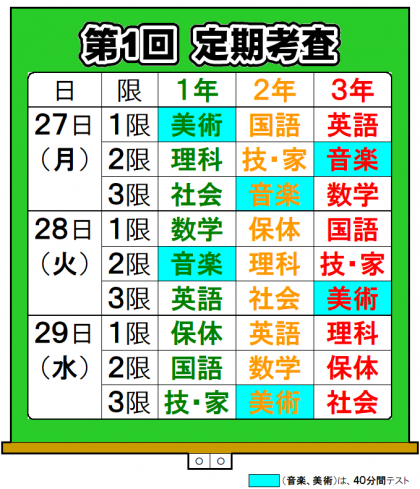 明後日27日(月)から、「第1回 定期考査」が始まります。