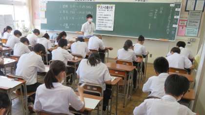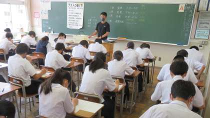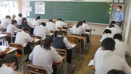 2年・第1回 定期考査・1日目 公開日 2022/06/27 更新日 2022/06/27 2学年 6月27日(月) 1限 国語 今日から、「第1回 定期考査」が始まりました。 (写真 上:2年1組 中:2年2組 下:2年3組) みんな真剣に受検しています。