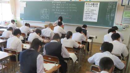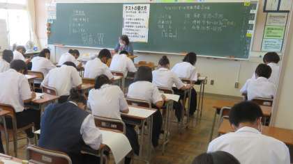 2年・第1回 定期考査・2日目 公開日 2022/06/28 更新日 2022/06/28 2学年 6月28日(火) 1限 保体 「第1回 定期考査」は2日目です。 (写真 上:2年4組 下:2年5組) テストに集中して取り組んでいます。
