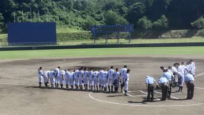市民体育大会・その1 公開日 2022/07/01 更新日 2022/07/01 部活動 7月1日(金) 14:55 市民体育大会の先陣を切ったのは、野球です。 初戦は、大沢野球場で、藤ノ木、楡原,城山合同チームとの対戦です。 球場全体に緊張感が漂っています。
