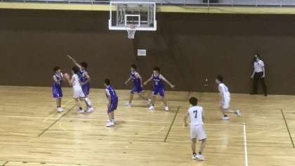 市民体育大会・その10 公開日 2022/07/03 更新日 2022/07/03 部活動 7月3日(日) 9:10 試合開始から、なかなかパスつながらなかったり、シュートが決まらなったり苦戦しています。 途中、反撃をするものの残念ながら負けてしまいました。 この悔しさは、県選でリベンジしてほしいものです。