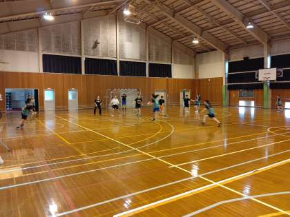 女子ハンドボール部は、県中学校総合選手権大会に向けて、卒業した先輩方の力を借りながら、練習を行いました。
