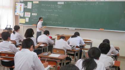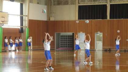 1年・授業風景 公開日 2022/07/06 更新日 2022/07/06 1学年 7月6日(水) 4限 気温は29度、天気はくもり。 蒸し暑いですが、1年生は授業がんばっています! (写真 上:1年2組 英語の授業) (写真 中:1年3組 理科の授業) (写真 下:1年4,5組女子 体育・バレーボー-ルの授業) 「直上オーバーハンドパスのテスト」