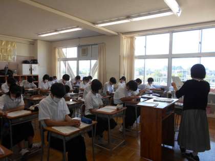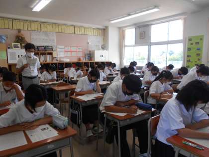 「校内人権週間」実施中! 公開日 2022/07/07 更新日 2022/07/07 山室中学校のページ 7月7日(木) 8:20 今週月曜から金曜まで、「校内人権週間」を実施しています。 朝の時間を活用して、人権作文を担任が読み、感想を書いています。 今日は「点字」についての作文でした。 (写真 上:1年1組 中:2年1組 下:3年5組) 人権週間を通して、様々な角度から人権について考える機会になるといいですね。