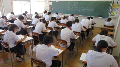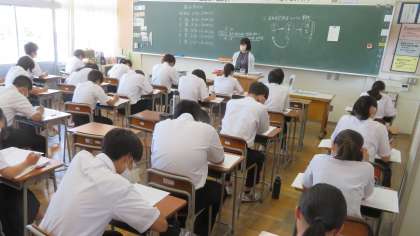 3年・第1回 実力テスト 公開日 2022/07/08 更新日 2022/07/08 3学年 7月8日(金) 1限 社会 3年生は、1〜5限、「第1回 実力テスト」を行っています。 (1限:社会、2限:国語、3限:理科、4限:英語、5限:数学) (写真 上:3年1組 中:3年3組 下:3年5組) 1,2年生の学習範囲でしたが、手応えはどうだったのでしょうか? 分からなかったところ、苦手なところを見直ししましょう!