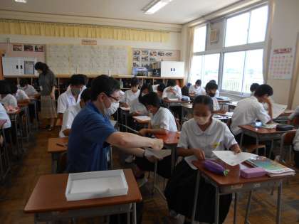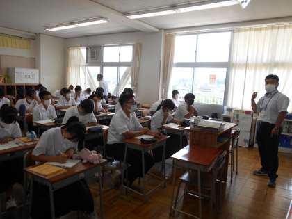 2年・授業風景 公開日 2022/07/08 更新日 2022/07/08 2学年 7月8日 4限 (写真 上:2年1組 数学) 連立方程式の計算をしています。 先生からのヒントを頼りに考えます。 (写真 中:2年3組 社会) 幕府が政策を変更した理由について、様々な角度から考えています。 (写真 下:2年5組 英語) どこに旅行に行きたいか、互いに質問して会話を楽しんでいます。