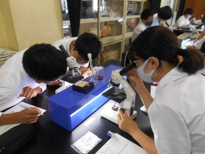 2年・理科・オオカナダモの観察 公開日 2022/07/08 更新日 2022/07/08 2学年 7月8日(金) 4限 2年2組の理科では、顕微鏡でオオカナダモの観察をしています。 「表面の様子はどうかな?」「核はどれかな?」 興味津々で顕微鏡をのぞいています。