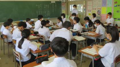 1年・授業風景 公開日 2022/07/13 更新日 2022/07/13 1学年 7月13日(水) 4限 1年生、授業がんばっています! (写真 上:1年1組 道徳「友達とともに」の授業) (写真 下:1年2組 英語の授業)