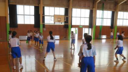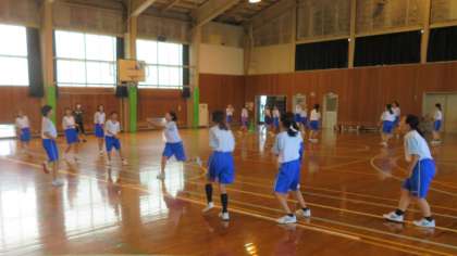 1年・体育・バレーボール 公開日 2022/07/13 更新日 2022/07/13 1学年 7月13日(水) 4限 1年4,5組女子の体育は、体育館でバレーボールです。 とにかくラリーを続けるよう、チームで大きな声を掛け合っています!
