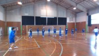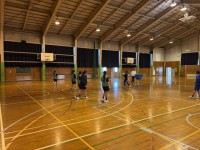 第1体育館では、男子ハンドボール部が、興南中と合同練習をしています。