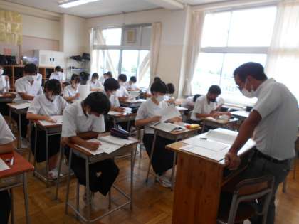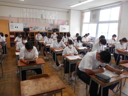 3年・「夏休みしおり」読み合わせ 公開日 2022/07/21 更新日 2022/07/21 3学年 7月21日(木) 1限 3年生にとって、中学校生活最後の夏休みがやってきます。 各教室でしおりの読み合わせをしています。生活時間のスケジュールを真剣に考えて書いている生徒もいます。 ぜひ、有意義な夏休みにしてくださいね! (写真 上:3年1組 中:3年4組 下:3年6組)