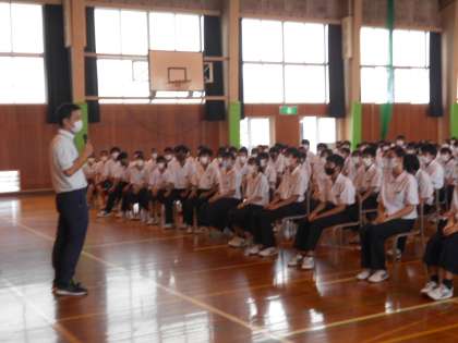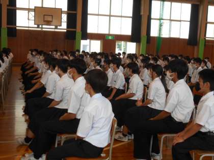1年生は、1限は、学期末の学年集会をしました。