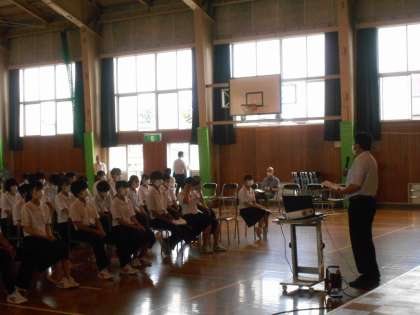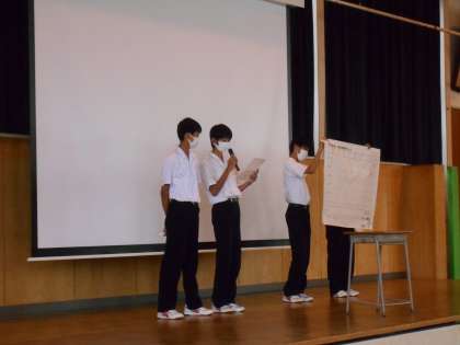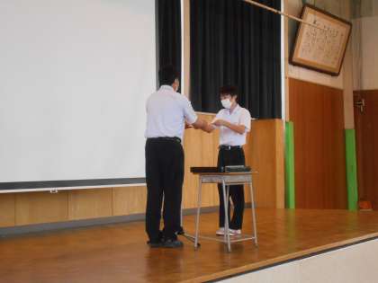 学年協議会のメンバーが中心となって、先日行った学年レクリエーションの結果発表や、学級MVPの表彰式をした後、夏休みの過ごし方について先生方よりお話がありました。