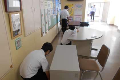 きらり☆山中生! 公開日 2022/07/22 更新日 2022/07/22 山室中学校のページ 7月22日(金) 1限 本日いよいよ、1学期の最終日を迎えました。 掃除の時間は、普段清掃が行き届かない部分もしっかりと掃除しました。 自分たちで考えて、机をよかしてほこりをとったり、床を磨いたり、用具の整頓をしたりとテキパキと仕事する山中生!素敵です。