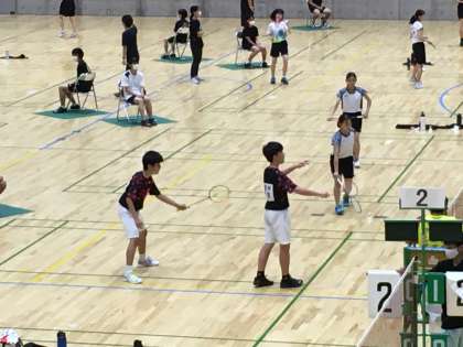 県民体育大会・その5 公開日 2022/07/23 更新日 2022/07/23 部活動 7月23日(土) 13:00 決勝戦では、中新川郡に1対3でチームとしては惜しくも敗れたものの、山室中ペアは決勝でも勝利しました! 堂々の2位、富山市選抜Bチーム、おめでとうございます!