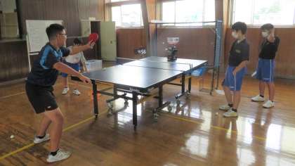 7月27日(水)の部活動・その1 公開日 2022/07/27 更新日 2022/07/27 部活動 7月27日(水) 10:00 夏休み5日目、気温は27度、天気はくもり。 日差しが届きはじめ、蒸し暑くなってきました。 第2体育館では、卓球部が元気に練習しています。