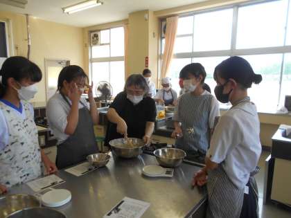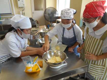 7月28日(木)の部活動・その4 公開日 2022/07/28 更新日 2022/07/28 部活動 7月28日(木) 13:00 家庭科部は午前中から、クッキー作りに励んでいます。 1年生〜3年生までグループになって、協力して作っています。 家庭科室からはとてもいいにおいがしています!