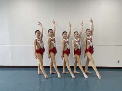 新体操部は、チームワークで精一杯、演技に挑み、団体4位でした。