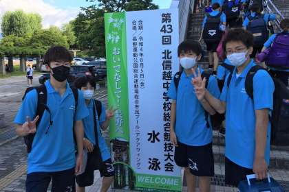 北信越大会・水泳競技 公開日 2022/08/05 更新日 2022/08/05 部活動 8月5日(金) 9:00 北信越大会・水泳競技は、長野市長野運動公園総合運動場総合市民プール(アクアウイング)で行われます。 水泳部は今から会場入りです。 がんばってきま〜す!
