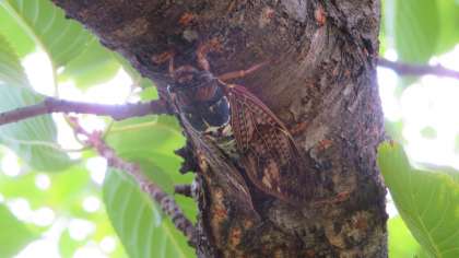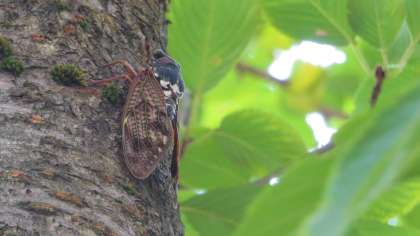 この時期、よく見かけるセミの仲間で、茶色い羽とジリジリと聞こえる鳴き声が特徴的です。