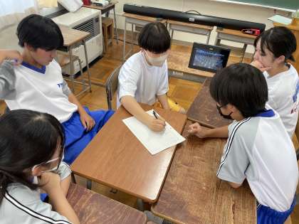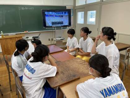 女子バスケットボール部は、動画を見ながら練習試合を振り返りました。