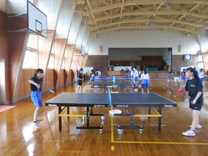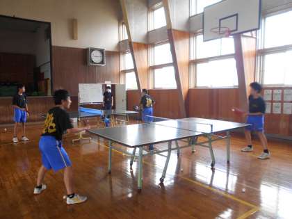 8月9日(火)の部活動・その5 公開日 2022/08/09 更新日 2022/08/09 部活動 8月9日(火) 10:30 卓球部は男女とも試合形式の打ち合いをしています。 それぞれ、自分の課題や磨きたい技を意識して練習しています。