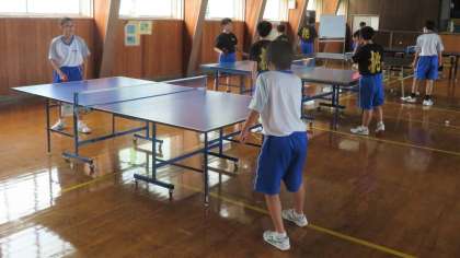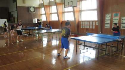 8月18日(木)の部活動・その3 公開日 2022/08/18 更新日 2022/08/18 部活動 8月18日(木) 9:00 第2体育館では、卓球部が練習を開始しました。 松下先生も飛び入り参加で、球出しをしてもらっています。(写真:下)