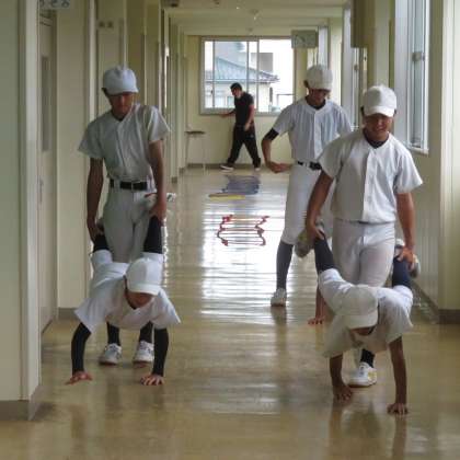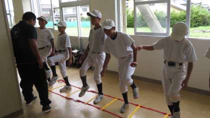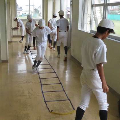 野球部は、グラウンドコンディションが悪いので、校舎内でトレーニングをしました。