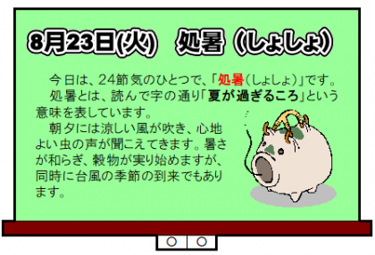 今日は、24節気のひとつ、「処暑(しょしょ)」です。